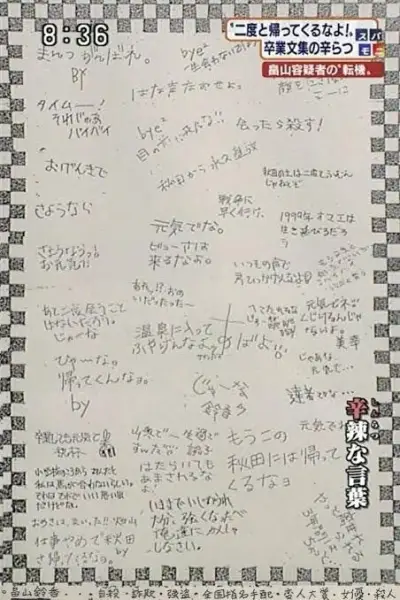 【画像】畠山鈴香さんの卒アルの寄せ書き、悲惨すぎる・・・