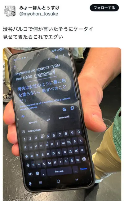 【画像】化粧男子、ロシア人に苦言を呈される