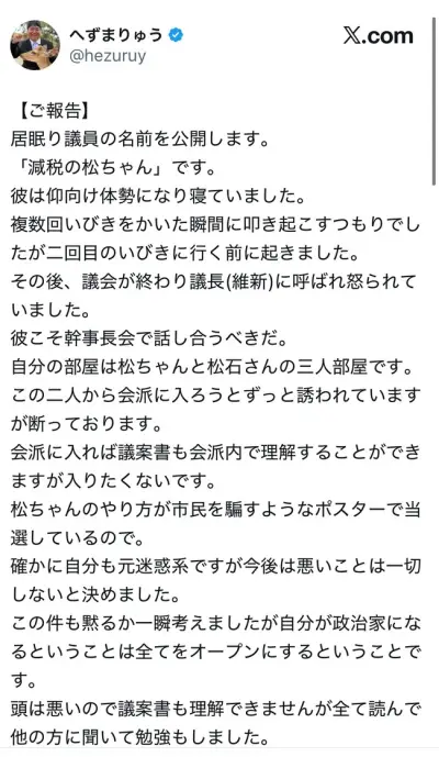【朗報】国士へずまりゅう、居眠り議員第一弾を晒すwwwwww