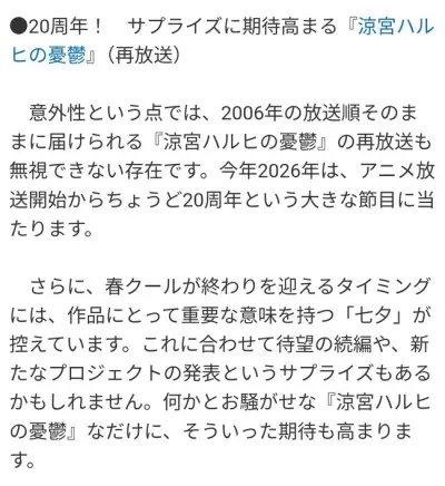 Yahooニュース「春から始まる涼宮ハルヒの憂鬱再放送、アレ実は3期です」