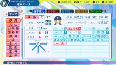 【最新アプデ版】 パワプロの伊藤大海と隅田の能力がこちら