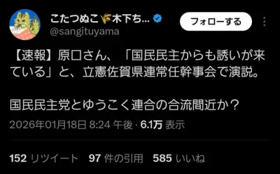 【朗報】立憲民主党の衆議院議員の99.3%(148人中147人)が中道改革連合への合流を表明