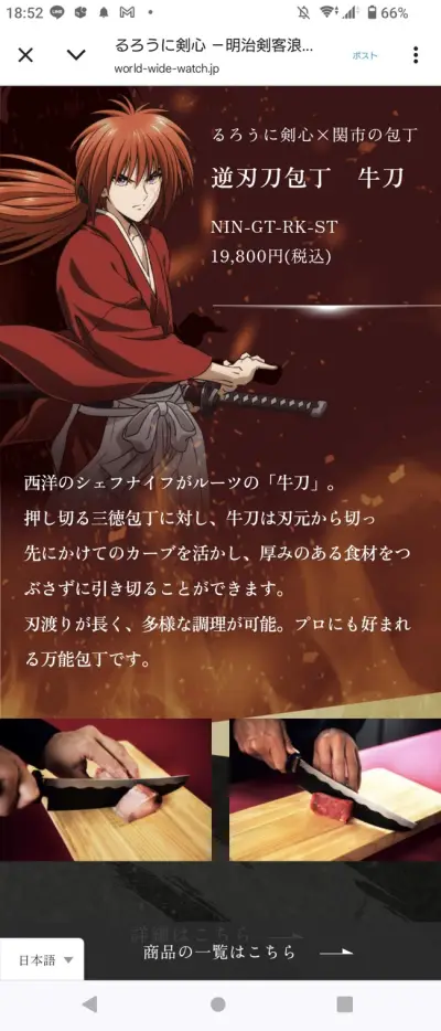 【朗報と悲報】るろうに剣心の逆刃刀をイメージしたかっこいい包丁が登場!!でもなにかおかしい