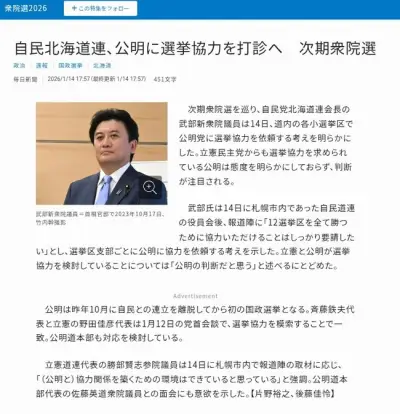 【悲報】自民党さん、公明党に選挙協力を打診していたwwwwww