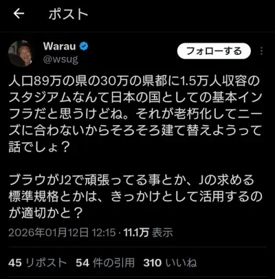 ブラウブリッツ秋田「1.5万人収容のスタジアム建築は基本中の基本」