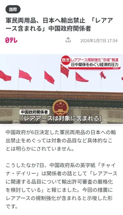 高市内閣「中国は日本ターゲットにした禁輸措置やめて!」