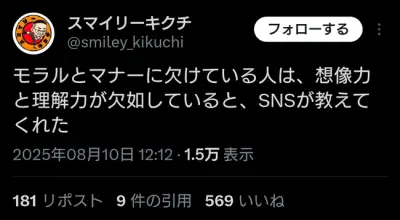 【悲報】スマイリーキクチさん、広陵高校問題についてお気持ち表明