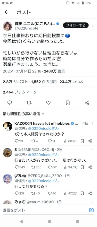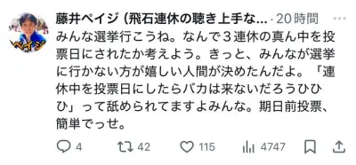 藤田ニコル「選挙行こ!投票なんてすぐだよ!忙しいは理由にならない」←「許せねぇ」