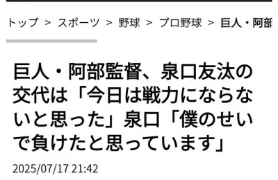 巨人・阿部監督 泉口の懲罰交代に言及「今日は戦力にならないと思って」