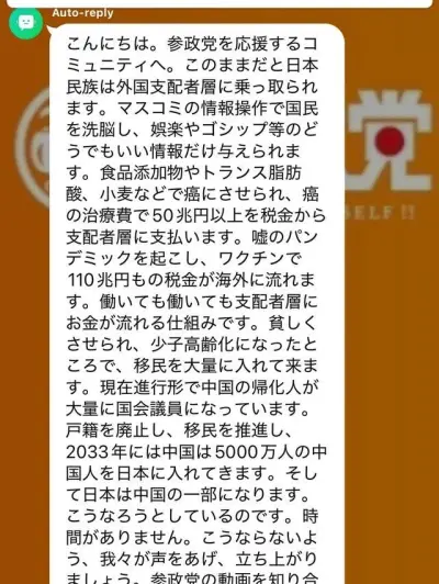 参政党のオープンチャット、入ったら欲張りセットをご査収させられる模様