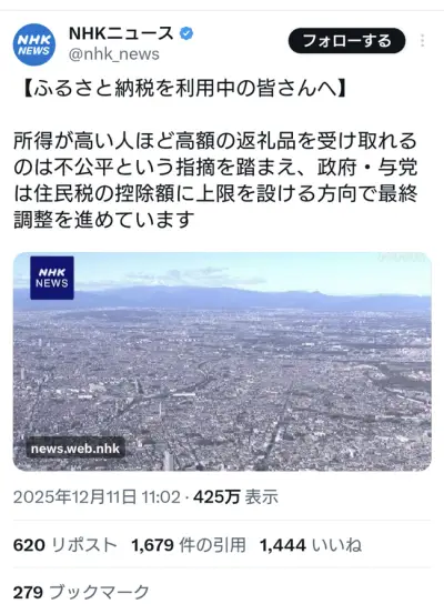 底辺「ふるさと納税で所得が高い人ほど高額の返礼品を受け取れて不公平😡」