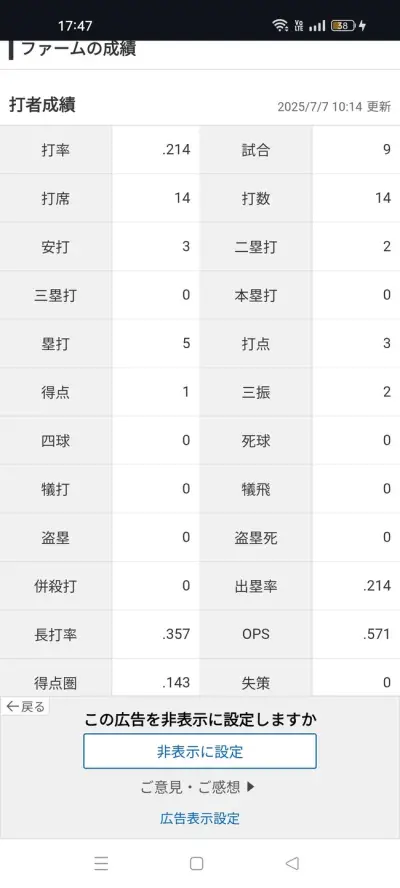 中田翔(年俸3億)「打率.214(14-3)0本3打点 OPS.571」←これについての率直な感想www