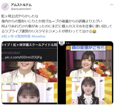 【悲報】ラブライブ公式アカウント、鬼頭明里批判ツイートを誤リポストwwwwww