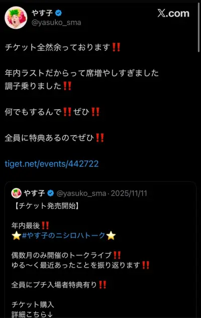 【悲報】やす子、トークライブショーのチケットが余ってしまう 60分2000円の神コスパなのにどうして…