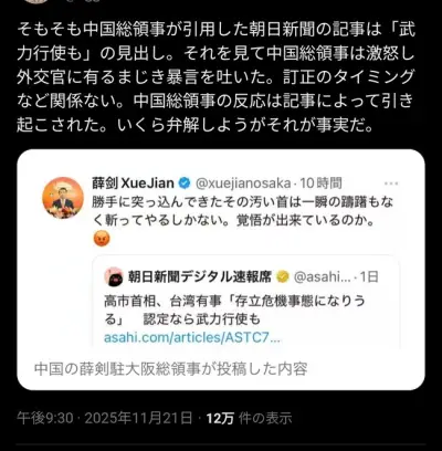 【超絶悲報】高市中国問題、いつの間にか中国が逆ギレしたことになってしまうwww