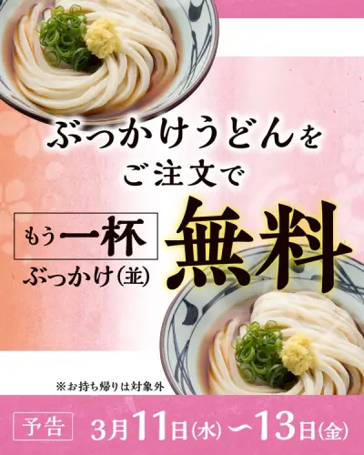 丸亀製麺、ぶっかけうどんを注文するとその場でもう一杯プレゼント