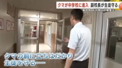 副校長、中学校に侵入してきたクマの前に立ちはだかり生徒を守る