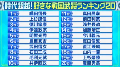 最新の「好きな戦国武将ランキング」、北条も斎藤も島津も大友も長宗我部もランキング圏外w