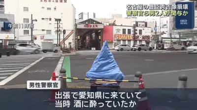名古屋・首折られた豊臣秀吉像、出張で来ていた愛媛県警の警察官らが関与か