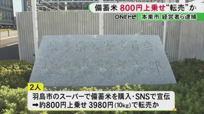 備蓄米を転売した30代男女2人を国民生活安定緊急措置法違反容疑で書類送検