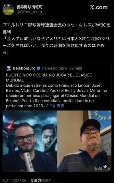 【画像】プエルトリコ野球連盟会長がWBCに苦言「日米で勝手にやってろ」 出場辞退も示唆