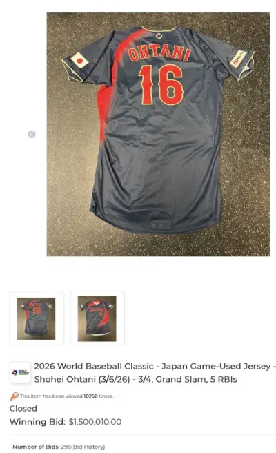 【画像】大谷翔平着用WBCユニフォームが2億3900万円で落札