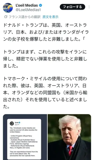 【画像】ドナルド・トランプ「トマホークで小学校爆撃した犯人が分かった。日本かもしれない」