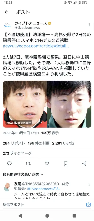 【画像】騎手の池添謙一、WBCを観てしまって騎乗停止