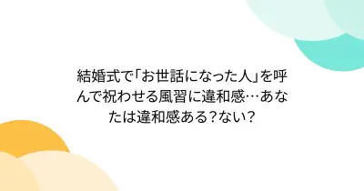結婚式で「お世話になった人」を呼んで祝わせる風習に違和感…あなたは違和感ある?ない?