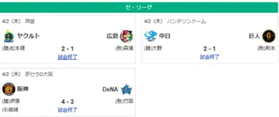 4/2セ順位 ヤク=-神-広-/巨/==De中