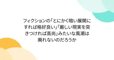 フィクションの「とにかく暗い展開にすれば格好良い」「厳しい現実を突きつければ高尚」みたいな風潮は廃れないのだろうか