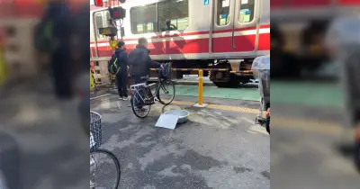 立石の踏切前に「PLEASE REMEMBER ME」と書かれたタライが置いてあった…まじでなにこれ?