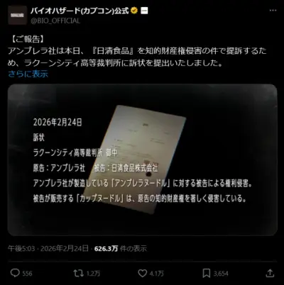 日清食品、カップヌードルが知的財産権を侵害している!と訴えられる