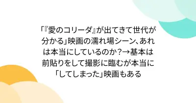 「『愛のコリーダ』が出てきて世代が分かる」映画の濡れ場シーン、あれは本当にしているのか?→基本は前貼りをして撮影に臨むが本当に「してしまった」映画もある