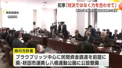 【秋田】新スタ整備3者協議 県は継続姿勢 鈴木知事「対決姿勢でなく力合わせ道筋つけるアプローチを」