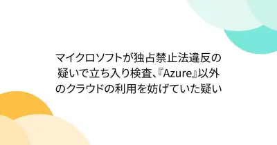 マイクロソフトが独占禁止法違反の疑いで立ち入り検査、『Azure』以外のクラウドの利用を妨げていた疑い