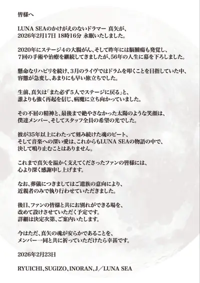【訃報】LUNA SEA 真矢さん死去 56歳