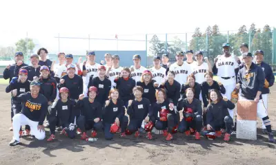巨人2軍、塁間を狭くしてソフトボール3連覇女子チームと合同練習
