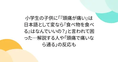 小学生の子供に「『頭痛が痛い』は日本語として変なら『食べ物を食べる』はなんでいいの?」と言われて困った…解説する人や「頭痛で痛いなら通る」の反応も