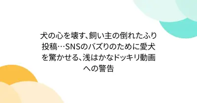 犬の心を壊す、飼い主の倒れたふり投稿…SNSのバズりのために愛犬を驚かせる、浅はかなドッキリ動画への警告