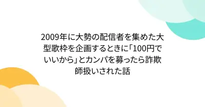 2009年に大勢の配信者を集めた大型歌枠を企画するときに「100円でいいから」とカンパを募ったら詐欺師扱いされた話