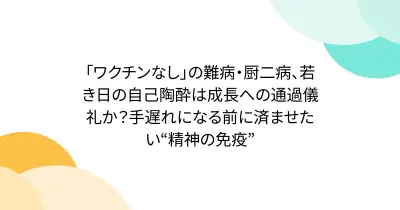 「ワクチンなし」の難病・厨二病、若き日の自己陶酔は成長への通過儀礼か?手遅れになる前に済ませたい“精神の免疫”