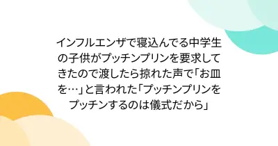 インフルエンザで寝込んでる中学生の子供がプッチンプリンを要求してきたので渡したら掠れた声で「お皿を…」と言われた「プッチンプリンをプッチンするのは儀式だから」