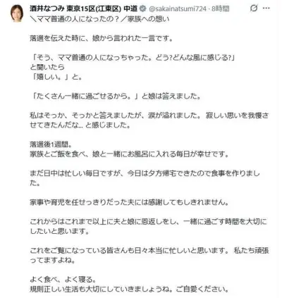 落選した中道女性議員「ママ普通の人になっちゃった…」