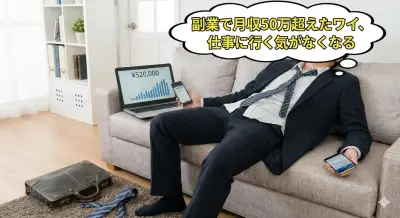 副業で月収50万超えたワイ、仕事に行く気がなくなる