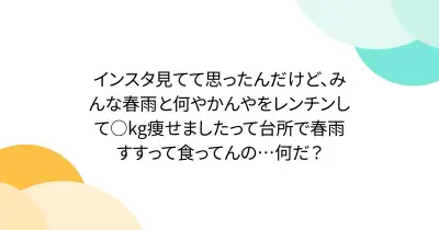 インスタ見てて思ったんだけど、みんな春雨と何やかんやをレンチンして○kg痩せましたって台所で春雨すすって食ってんの…何だ?