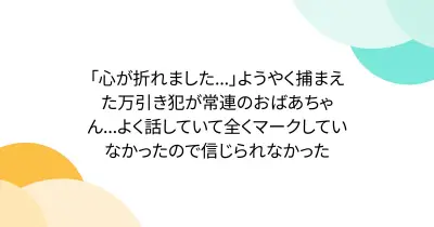 「心が折れました...」ようやく捕まえた万引き犯が常連のおばあちゃん...よく話していて全くマークしていなかったので信じられなかった