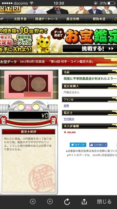【画像あり】彡(゜)(゜)「この10円玉エラー硬貨やんけ!なんでも鑑定団にだしたろ!」