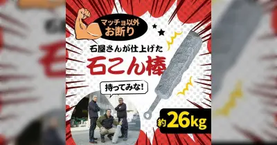 愛媛県鬼北町にふるさと納税を75万円払うと返礼品として「マッチョ専用装備〝石のこん棒〟(約26キロ)」をもらうことができる