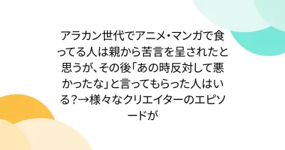 アラカン世代でアニメ・マンガで食ってる人は親から苦言を呈されたと思うが、その後「あの時反対して悪かったな」と言ってもらった人はいる?→様々なクリエイターのエピソードが